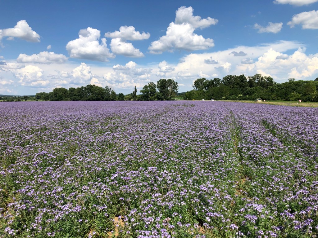 Hazafelé nem a Balaton északi partján, a 71-es úton mentünk az autópálya felé, hanem egy alternatív útvonalon a 8-as főút felé kerülve. Útközben, Nagyvázsony közelében, már távolról kiszúrtunk egy hatalmas, élénk lilán szinte világító levendulamezőt. A lányok kérésére természetesen meg is álltunk ott néhány fotó erejéig. A vicces az volt, hogy közelebb érve kiderült, hogy ez egyáltalán nem levendulamezőről volt szó, hanem – mint utóbb a kutatásaink megmutatták – ez a mézontófű nevű haszon/takarmánynövény volt. Mindenesetre az összhatás szempontjából nem sokat számított, mivel Viktor barátunk profi fotós, készült néhány egészen pazar kép.
