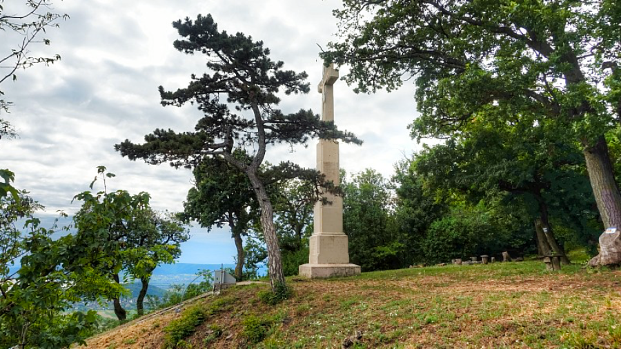 A kilátótól pedig már csak néhányszáz métert kellett sétálnunk, hogy elérjük a célpontunkhoz, a Renolder Kereszthez, ahonnan pedig 180 fokban lehet belátni a Balatont.