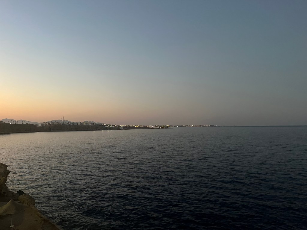 A város neve egyébként azt jelenti, hogy a Sejk öble (a sejk pedig a bölcs öreg elnevezése az arab világban). És ez az öböl egyébként egészen izgalmasan néz ki. A város egy része bőven a tengerszint felett magasodik a leszakadt part tetején és meredeken lehet lejutni a tengerig. Az újabb “belvárosi” részen pedig homokos plázst alakítottak ki. A tenger nagyon gyorsan mélyül, a parttól alig több, mint 10 méterre már 25-30 méter mély a tengerfenék. A víz pedig valószínűtlenül sötétkék. A tengerben található változatos élővilág pedig a búvárok egyik közkedvelt célpontjává tették a várost (meg úgy általában a Vörös-tengert).