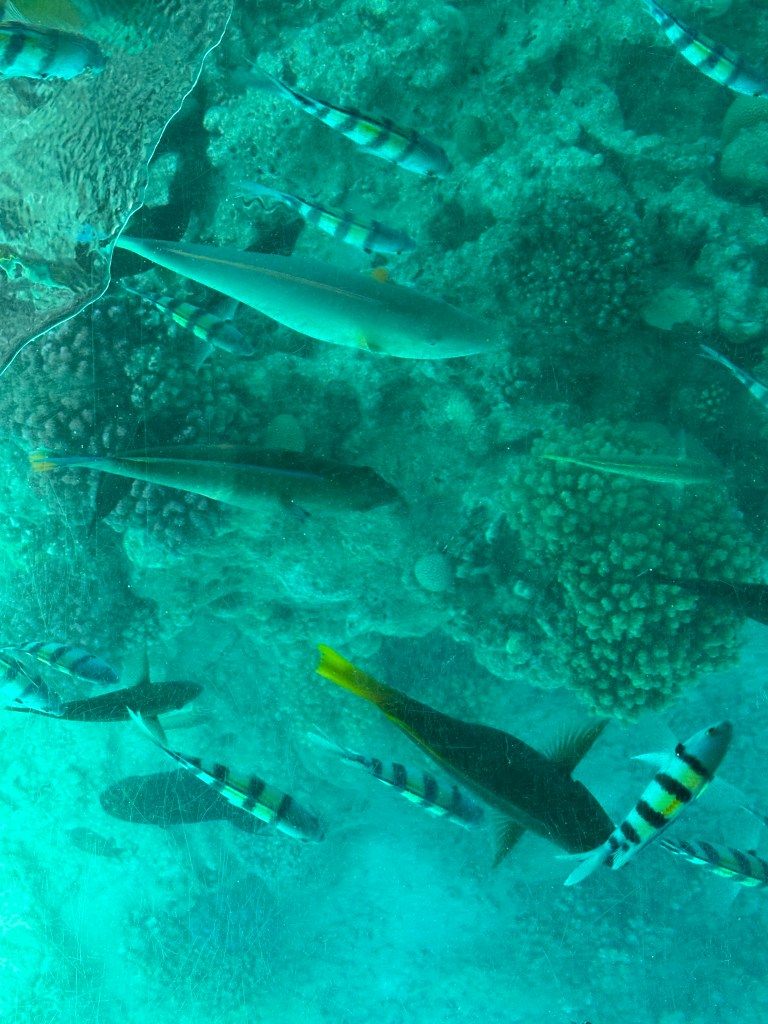 Mint említettem, pihenni mentünk, minimális programmal. Aztán a felajánlott programok közül végül mégis választottunk egyet: üvegfenekű hajón tengernézőbe mentünk.